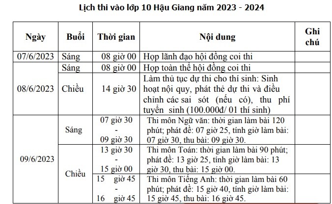 Theo kế hoạch, thời gian thi tuyển vào lớp 10 tại Hậu Giang sẽ diễn ra trong 2 ngày là 9 và 10/6.